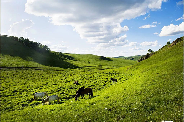 夏天的草原綠草如茵,深呼吸一口,清香的草木味撲鼻而來(lái),讓人心曠神怡、如癡如醉。漫游在草原上,風(fēng)吹草動(dòng),形成了一幅如詩(shī)如畫(huà)的景象,正如北朝民歌“天蒼蒼,野茫茫,風(fēng)吹草低見(jiàn)牛羊”!騎在馬背上,悠哉游哉,仿佛進(jìn)入了世外桃源。