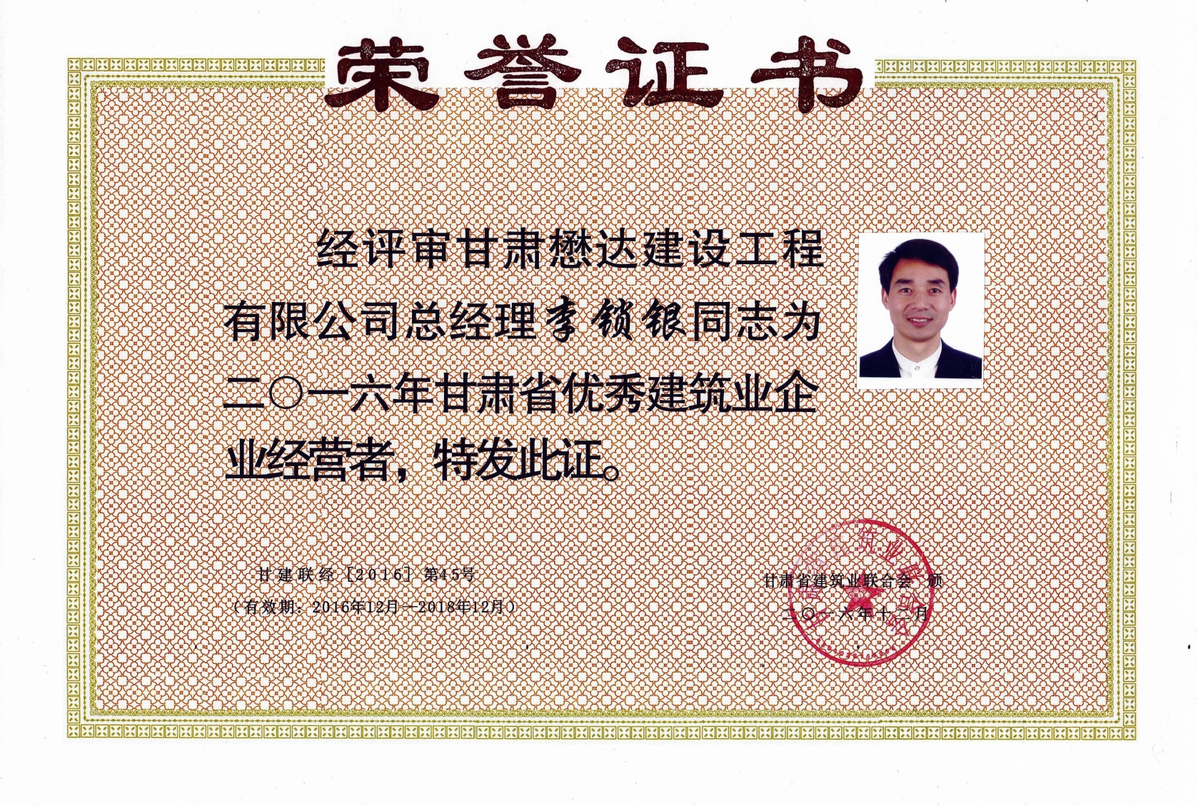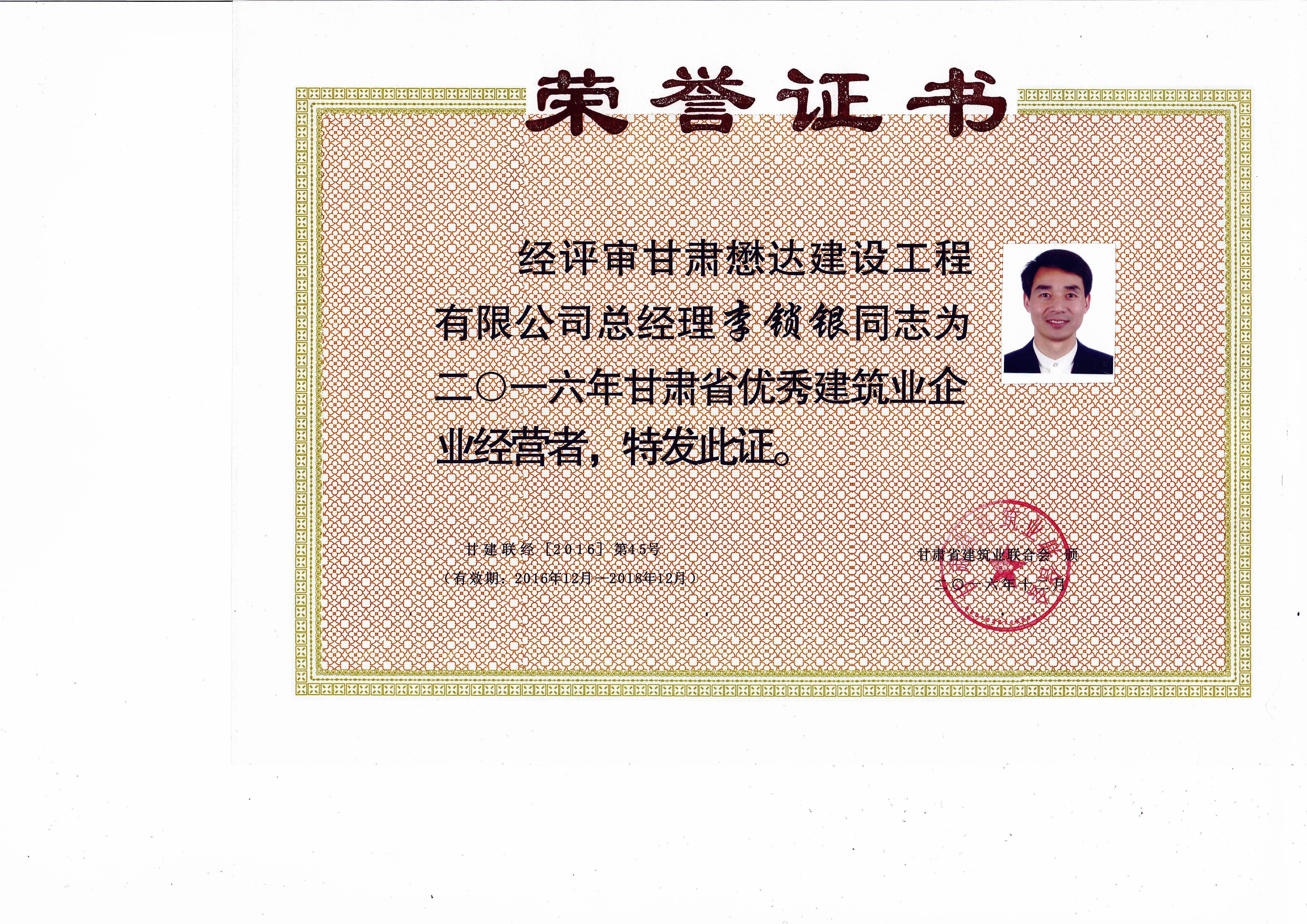 近日,甘肅懋達(dá)建設(shè)工程有限公司喜訊頻傳,在2016年甘肅省建筑業(yè)“三優(yōu)一文明”(優(yōu)秀建筑業(yè)企業(yè)、優(yōu)秀企業(yè)經(jīng)營(yíng)者、優(yōu)秀建造師和文明工地)活動(dòng)中,公司獲得了“2016年甘肅省優(yōu)秀建筑業(yè)企業(yè)”,董事長(zhǎng)李鎖銀獲得“2016年甘肅省優(yōu)秀建筑業(yè)企業(yè)經(jīng)營(yíng)者”,總工程師朱金平獲得“2016年甘肅省建筑業(yè)優(yōu)秀建造師”榮譽(yù)。