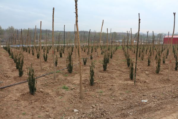 水陽鎮(zhèn)兩埡基地于2015年10月啟動建設(shè),目前已流轉(zhuǎn)土地2000畝,完成投資5400萬元,栽植了雪松、七葉樹、銀杏、紅葉石楠、紫薇、櫻花、桂花、女貞、廣玉蘭、欒樹、皂角等20個樹種共計(jì)13萬余株。銀杏樹鎮(zhèn)馬莊基地是公司投資建設(shè)的第二個苗木基地,于2016年9月啟動建設(shè),目前已流轉(zhuǎn)土地800多畝,完成投資1300萬元,栽植了紅豆杉和國槐兩個精品樹種共計(jì)3萬余株。