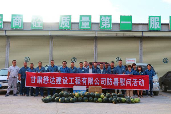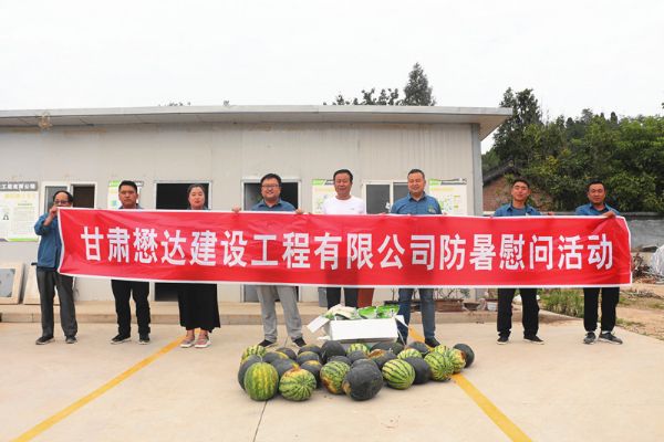 近日,甘肅懋達(dá)建設(shè)工程有限公司工會(huì)組織開展了2019年防暑慰問活動(dòng),對在高溫酷暑天氣下,奮戰(zhàn)在生產(chǎn)一線的員工送去茶葉、冰糖、西瓜等慰問品。此次活動(dòng),公司把關(guān)愛和清涼送到一線,不僅體現(xiàn)了公司對一線員工的關(guān)心、關(guān)愛和關(guān)懷,同時(shí)進(jìn)一步激發(fā)了他們的工作熱情。