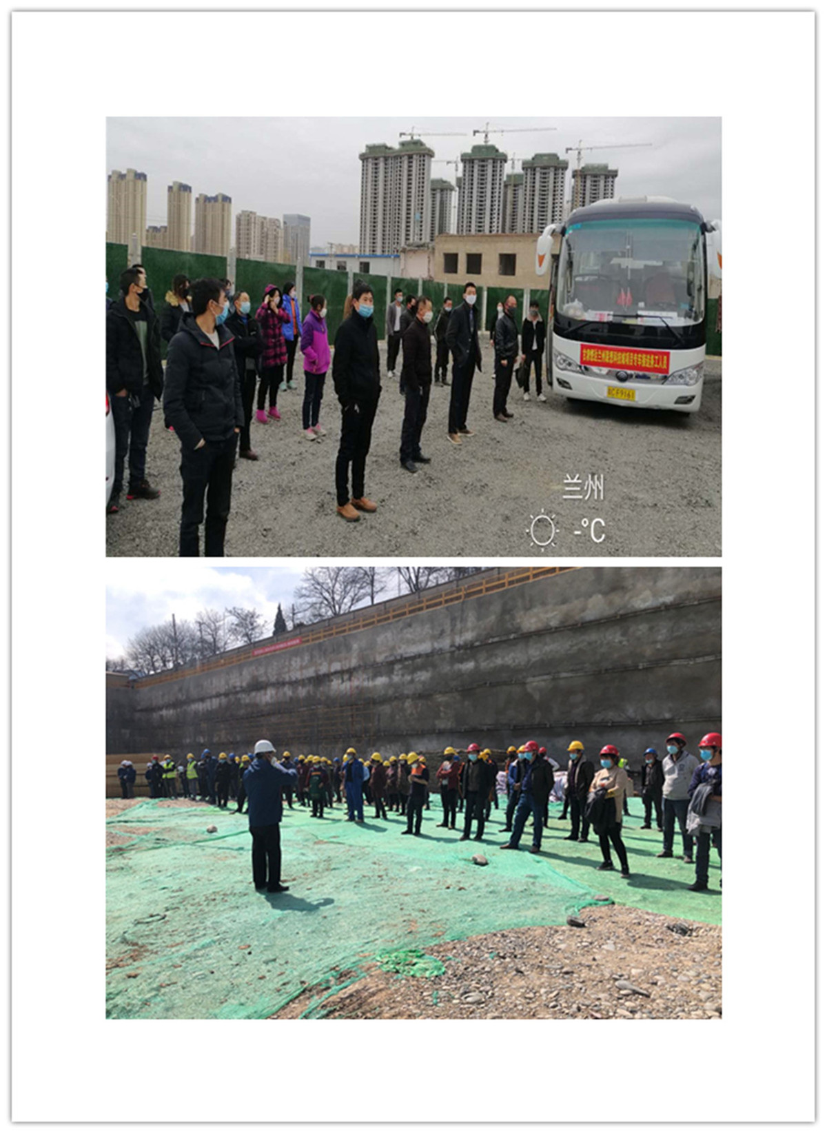 蘭州聯(lián)想科技城項(xiàng)目部安排專車接送務(wù)工人員,到施工現(xiàn)場(chǎng)后開展安全及疫情防控教育。