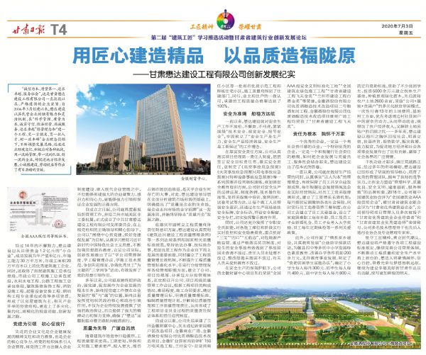 堅守工匠精神,勇立時代潮頭。懋達建設(shè)將嚴格遵守各項工程建設(shè)標準規(guī)定,繼續(xù)完善公司管理體制,不斷推動工程質(zhì)量和安全生產(chǎn)水平再上新臺階;更將豪情滿懷、信心百倍,帶著光榮與夢想揚帆遠航,繼續(xù)為建設(shè)幸福美好新甘肅做出應有貢獻,續(xù)寫更加輝煌的明天。
