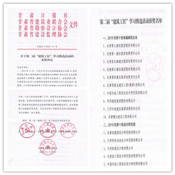 “工匠精神,榮耀甘肅”甘肅省建筑工匠學(xué)習推選活動由甘肅日報社聯(lián)合甘肅省建筑業(yè)聯(lián)合會、甘肅省勘察設(shè)計協(xié)會、甘肅省建設(shè)監(jiān)理協(xié)會共同主辦,旨在大力弘揚工匠精神,厚植工匠文化,推選出一批在建設(shè)領(lǐng)域改革創(chuàng)新、精益求精、堅守專注的企業(yè)和個人,為社會增添更多正能量。