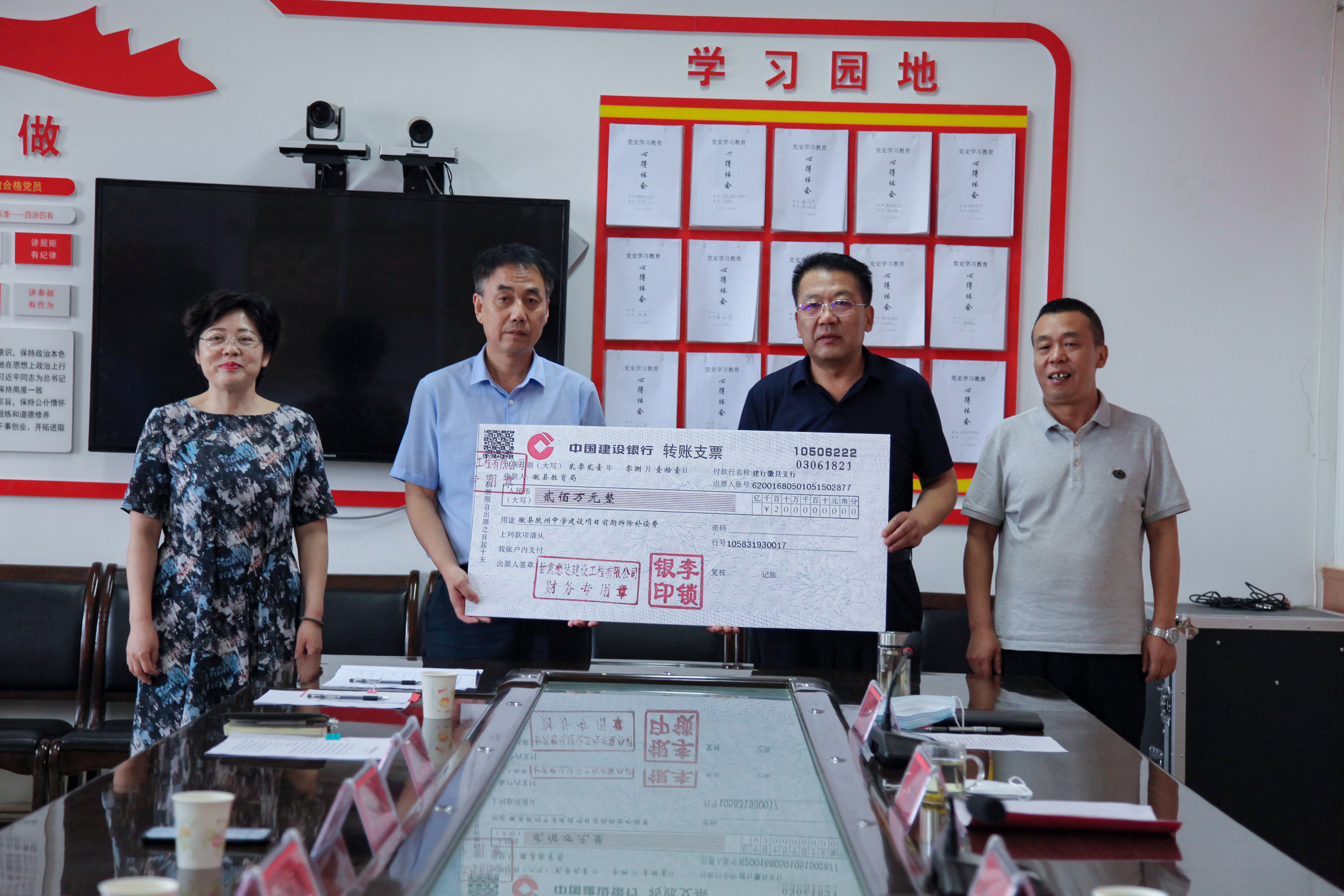 8月11日上午,甘肅懋達(dá)建設(shè)工程有限公司心系教育情系徽縣公益事業(yè)捐贈活動儀式在徽縣教育局隆重舉行。徽縣縣委常委、宣傳部長張劍蓉,政府副縣長孫偉,縣教育局黨組書記、局長郝世俊,公司領(lǐng)導(dǎo)封曉成出席儀式,縣發(fā)改局等相關(guān)單位負(fù)責(zé)人參加儀式,活動徽縣教育黨工委書記、副局長梁建存主持。