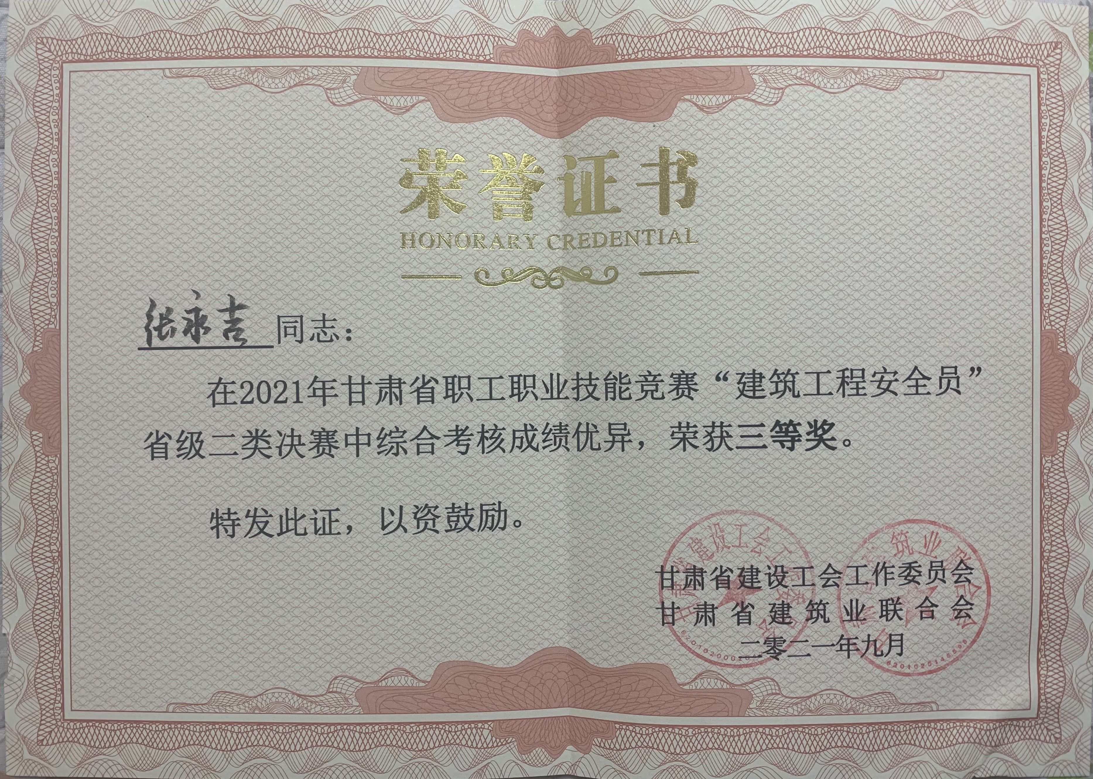 近日,2021年甘肅省職工職業(yè)技能競賽“建筑工程安全員”省級二類決賽在蘭州新區(qū)成功教育園項(xiàng)目舉行。公司選派安全員張永吉、張宏明參加競賽。