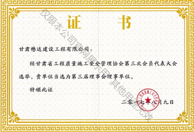 第三屆甘肅省工程質(zhì)量施工安全管理協(xié)會(huì)理事會(huì)理事單位