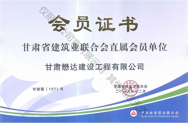甘肅省建筑業(yè)聯(lián)合會直屬會員單位證書