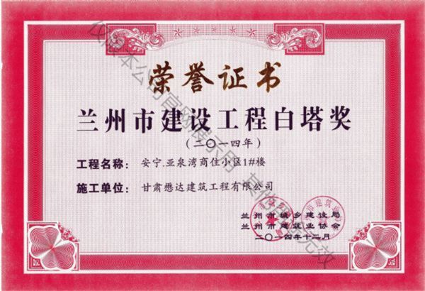 安寧.亞泉灣商住小區(qū)-2014蘭州市建設(shè)工程白塔獎(jiǎng)
