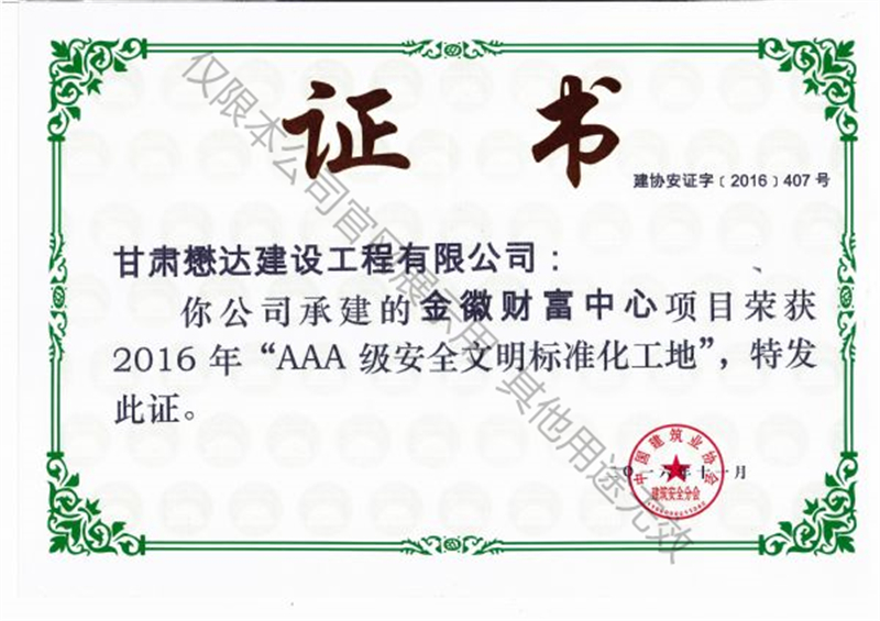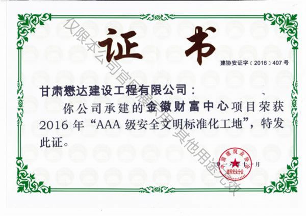 金徽財(cái)富中心-2016年AAA級(jí)安全文明標(biāo)準(zhǔn)化工地