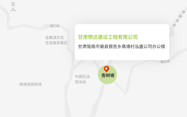 地址:甘肅隴南市徽縣銀杏鄉(xiāng)高墻村泓盛公司辦公樓
